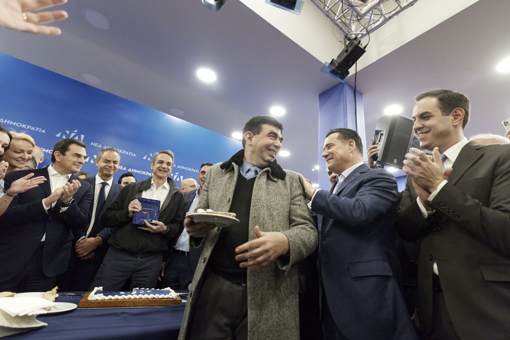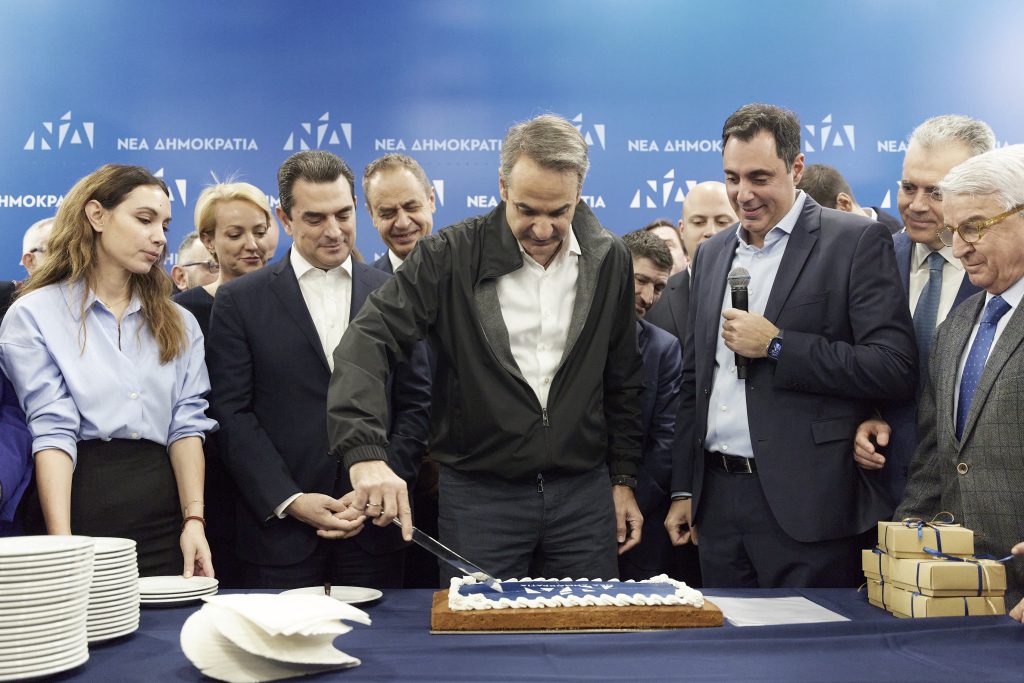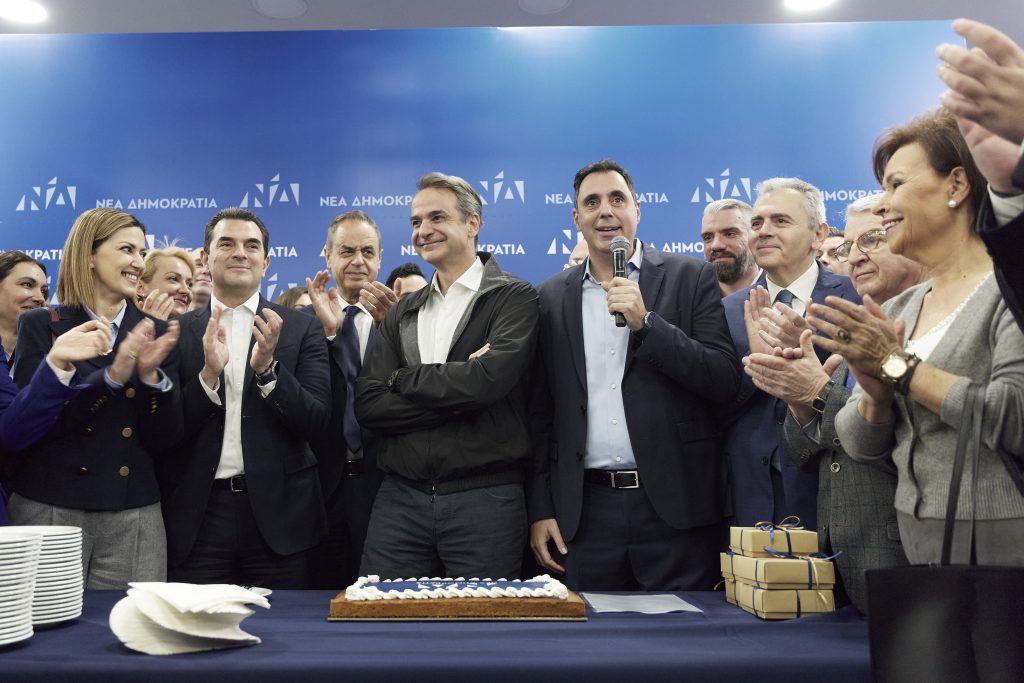 Ο Πρωθυπουργός και Πρόεδρος της Νέας Δημοκρατίας Κυριάκος Μητσοτάκης, παρουσία Υπουργών, Βουλευτών, στελεχών και φίλων της Νέας Δημοκρατίας, έκοψε το πρωί την πρωτοχρονιάτικη πίτα των εργαζόμενων της ΝΔ, στα κεντρικά γραφεία του κόμματος, στην οδό Πειραιώς.