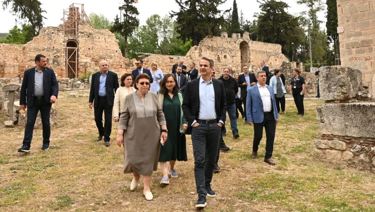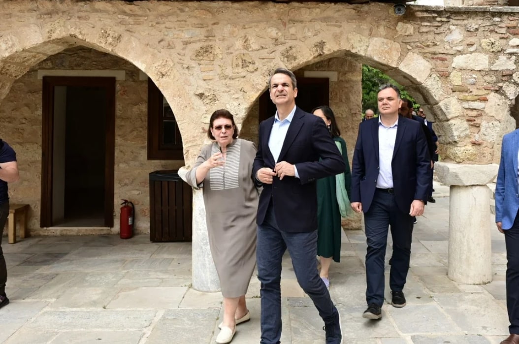 Μαζί του στην επίσκεψη ήταν και η υπουργός Πολιτισμού, Λίνα Μενδώνη, η οποία ενημέρωσε τον πρωθυπουργό για τα έργα στη Μονή.
