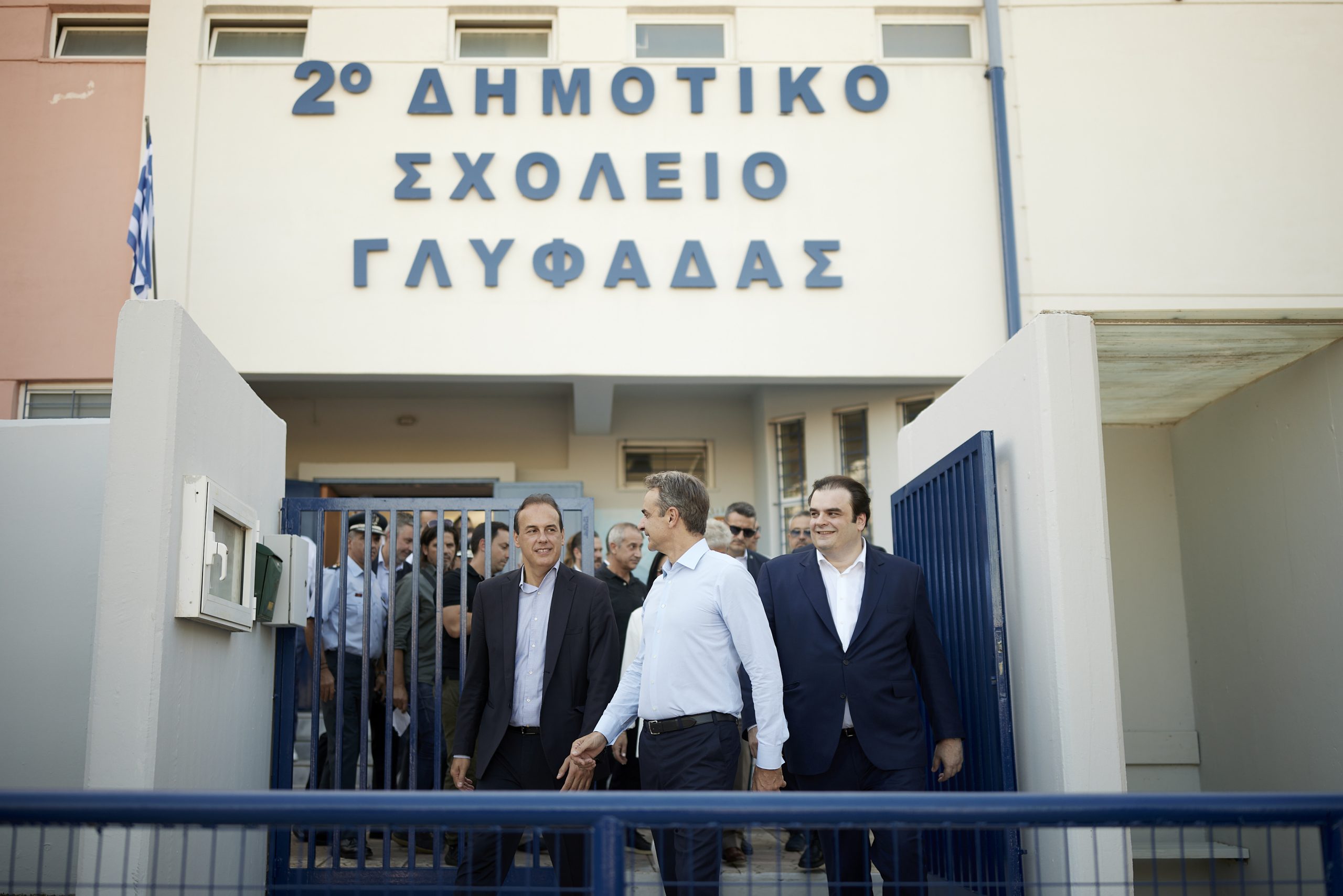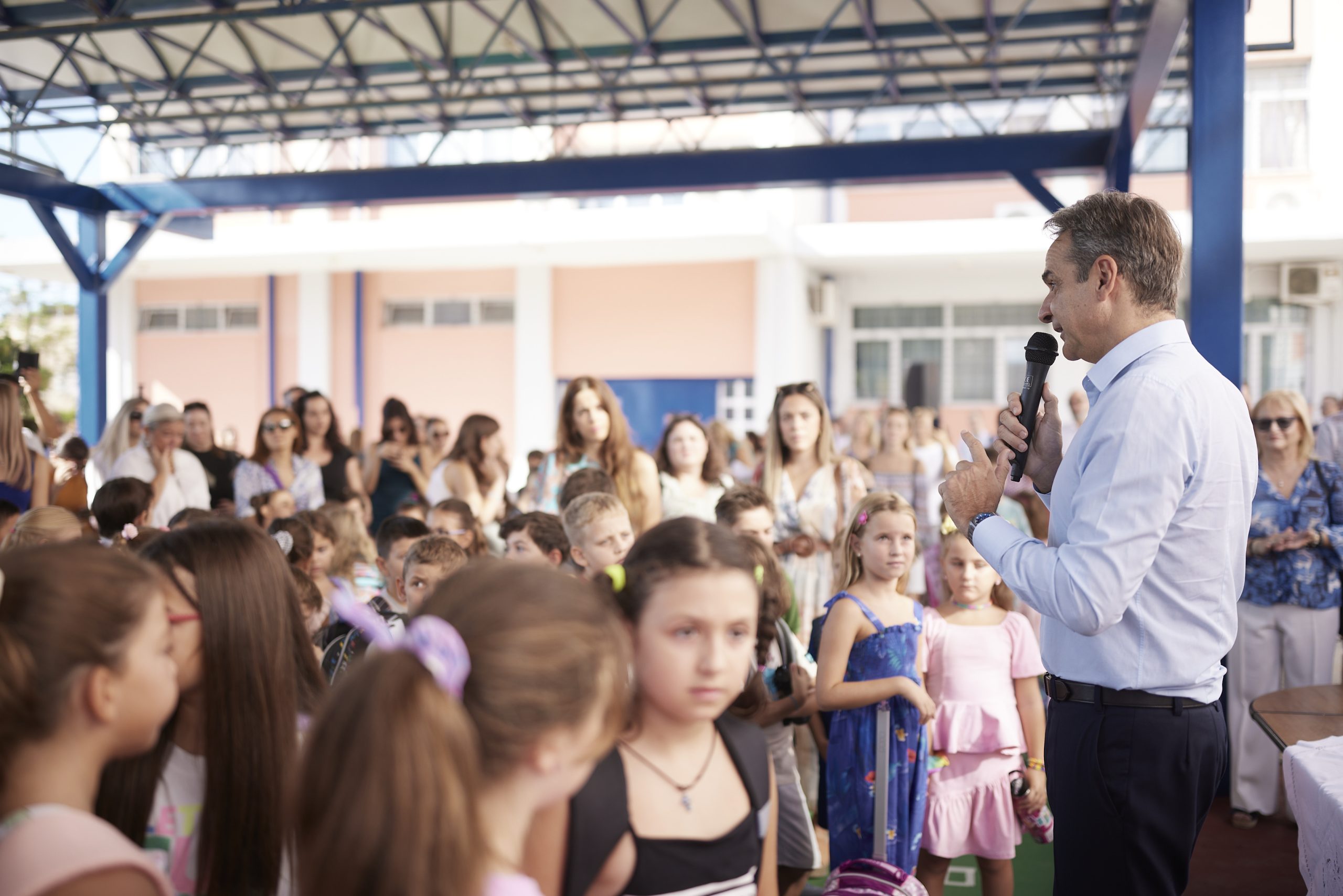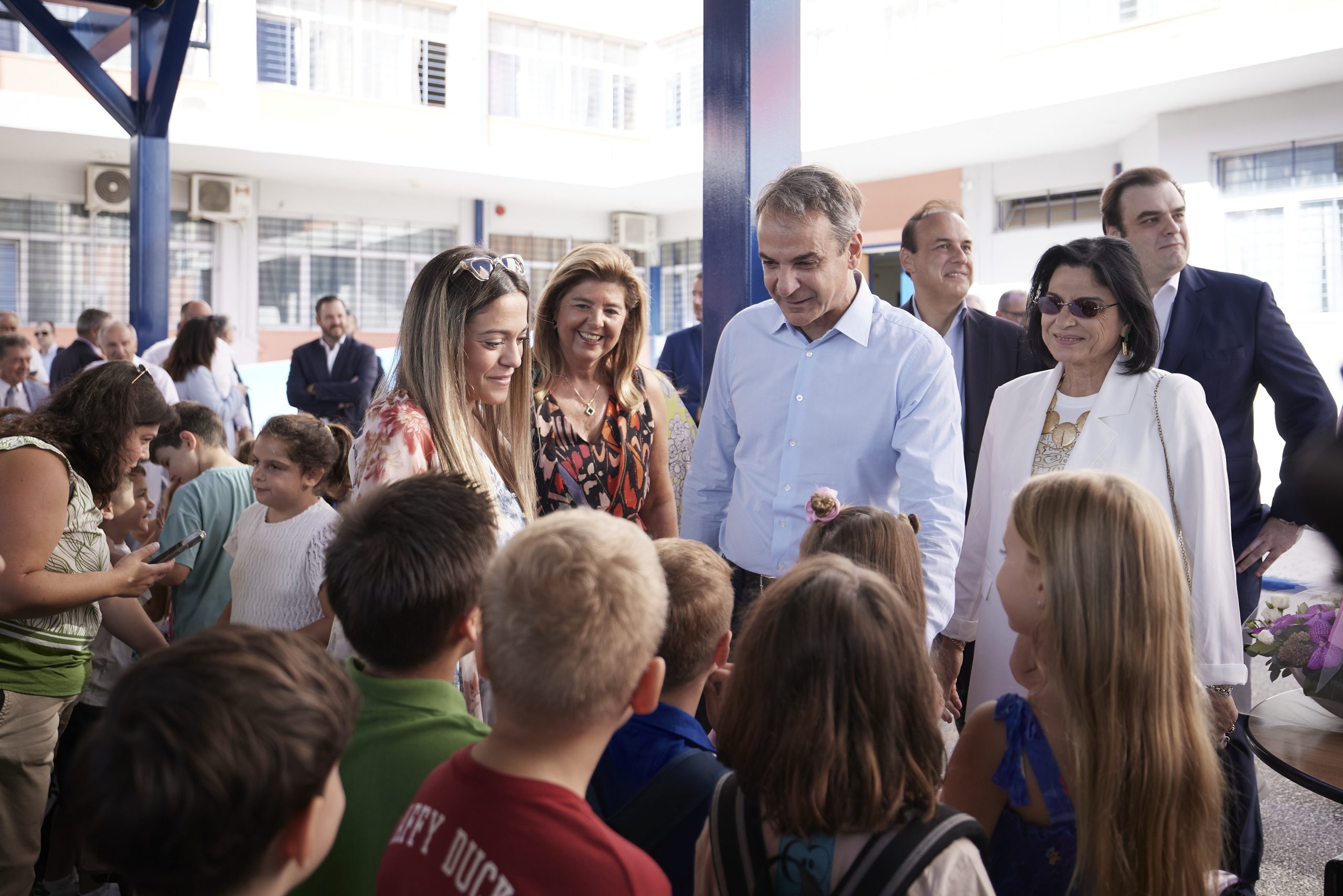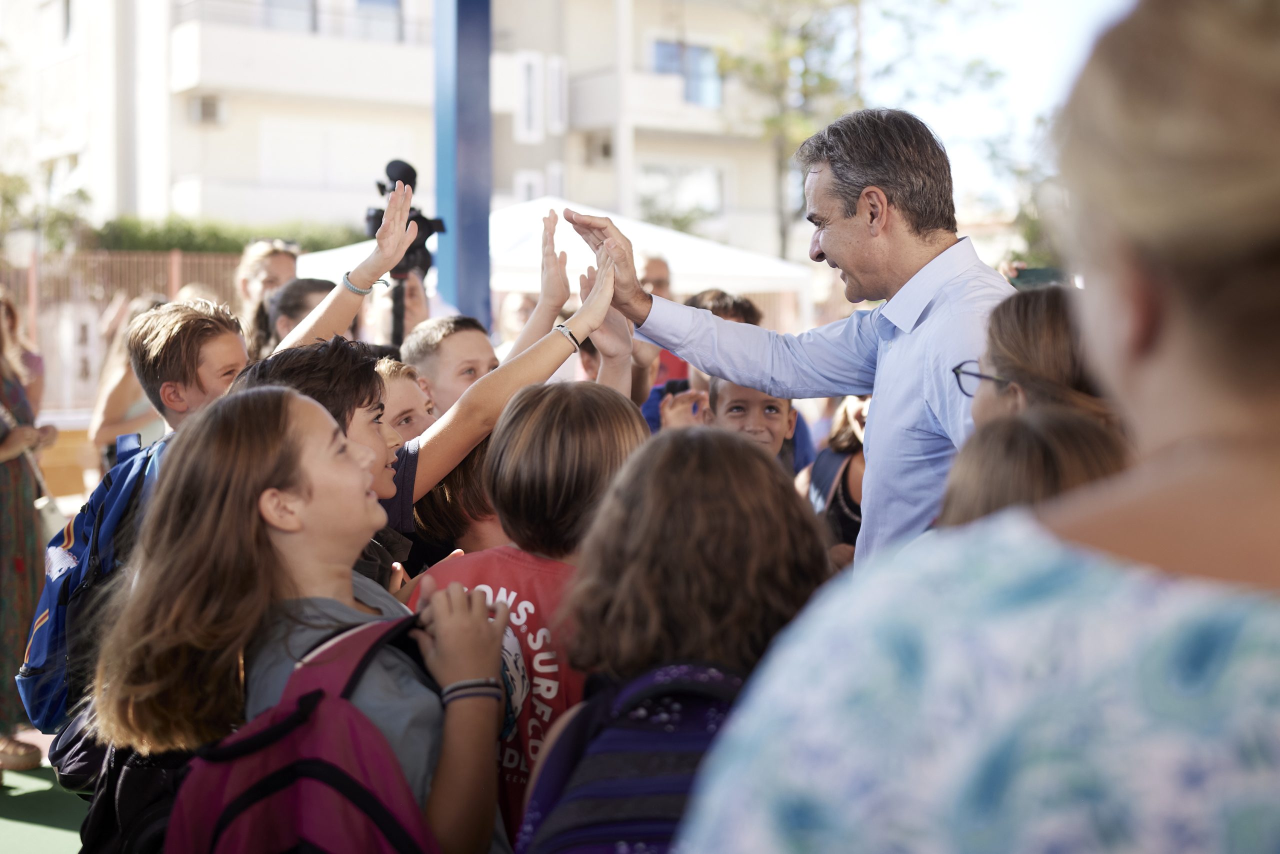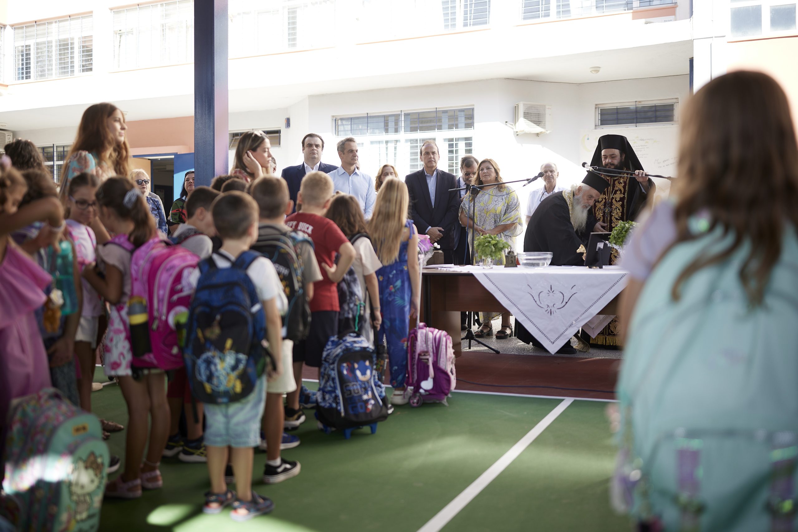 «Καλή χρονιά, γεμάτη χαμόγελα και αγάπη για τη γνώση», χρονιά που θα επιτρέψει στους μαθητές και τις μαθήτριες «να προοδεύσουν και πάνω από όλα να χαρούν το σχολείο και τη διαδικασία της γνώσης», ευχήθηκε ο πρωθυπουργός, Κυριάκος Μητσοτάκης, μετά τον αγιασμό για την επίσημη έναρξη της σχολικής χρονιάς στο 2ο Δημοτικό Σχολείο Γλυφάδας, όπου παρευρέθηκε συνοδευόμενος από τον υπουργό Παιδείας, Θρησκευμάτων και Αθλητισμού, Κυριάκο Πιερρακάκη, παρουσία και του δημάρχου Γλυφάδας, Γιώργου Παπανικολάου.