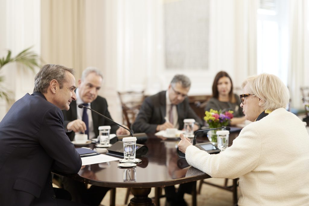 O Πρωθυπουργός Κυριάκος Μητσοτάκης συναντήθηκε στο Μέγαρο Μαξίμου με την Υπουργό Ενόπλων Δυνάμεων της Γαλλίας Catherine Vautrin.