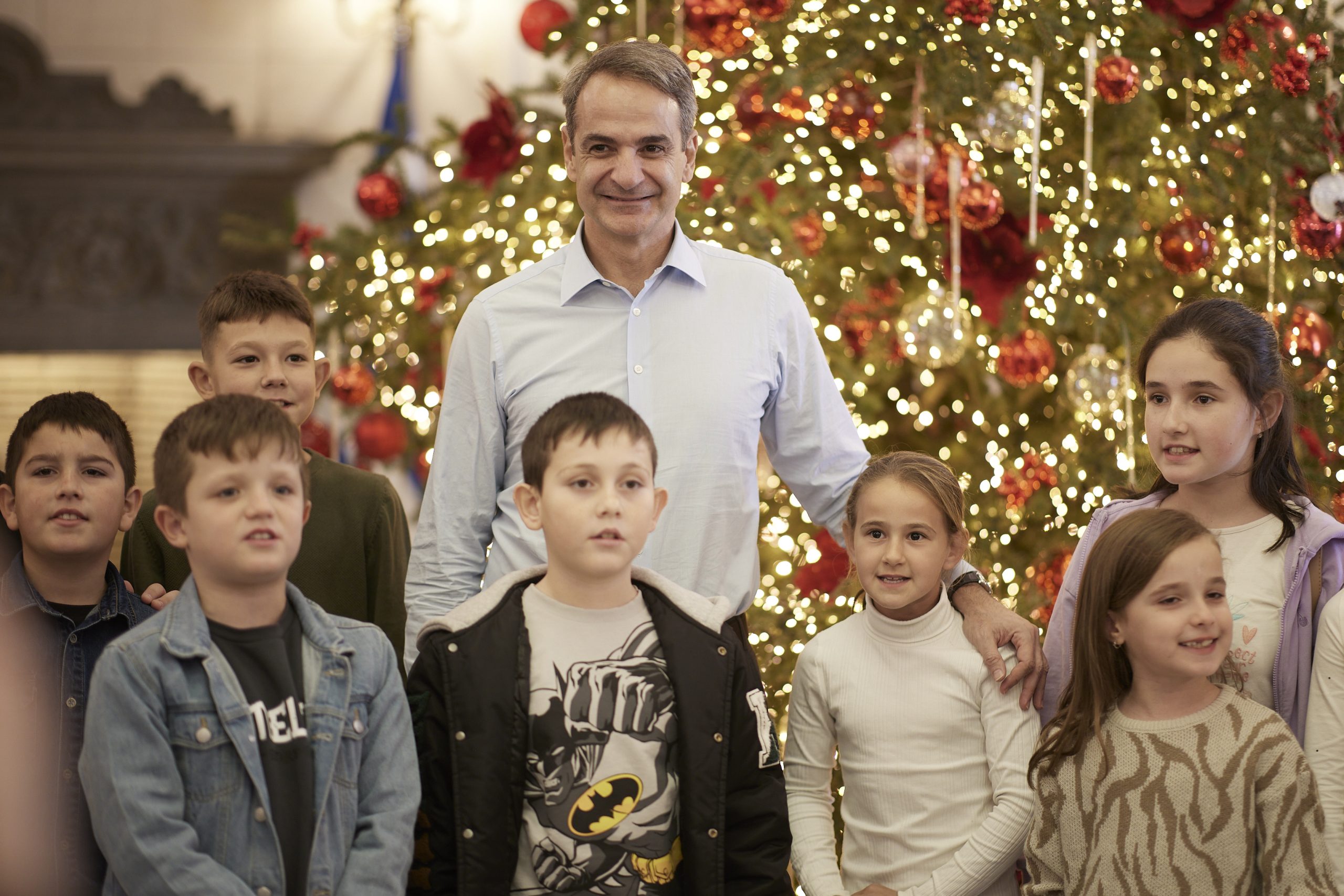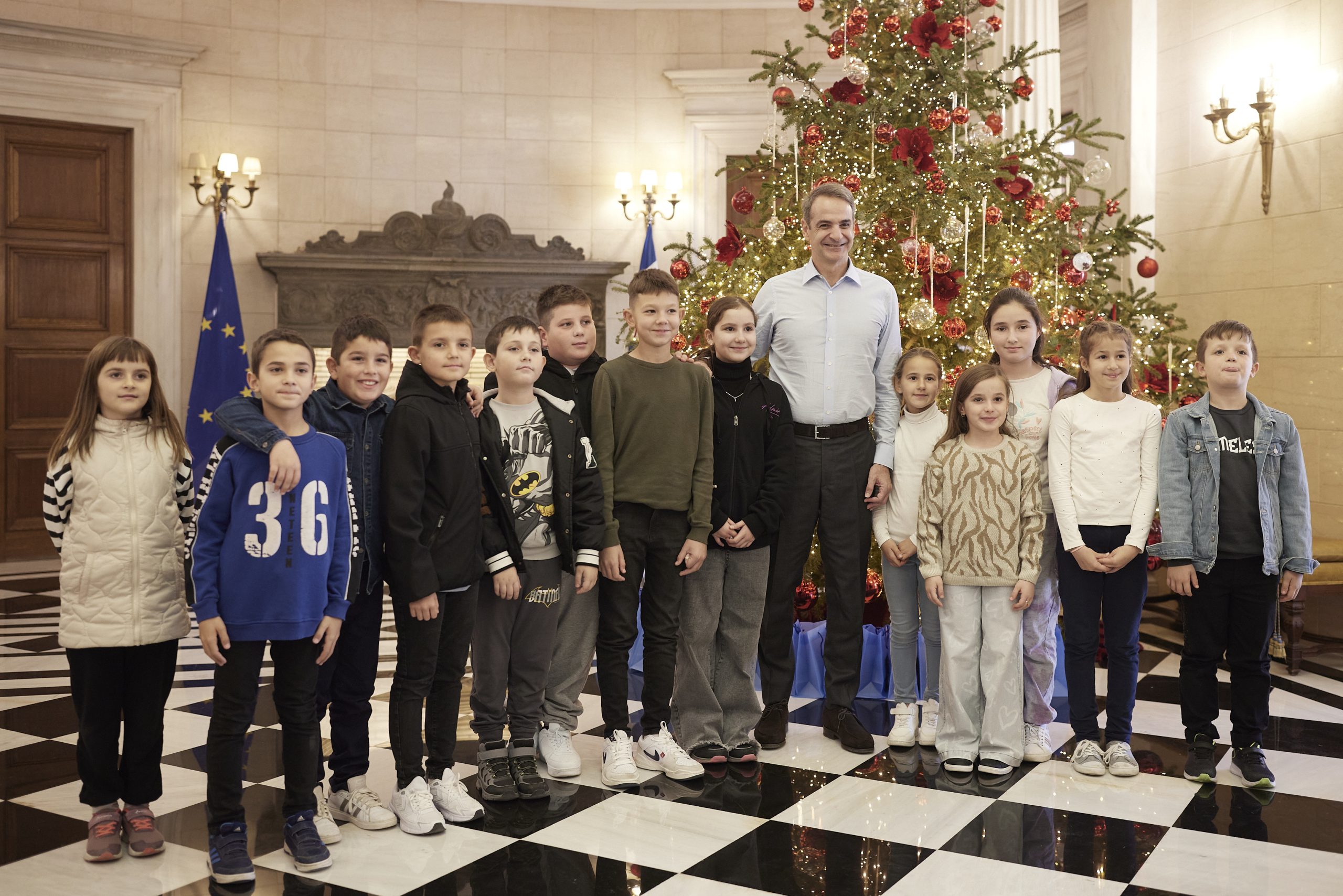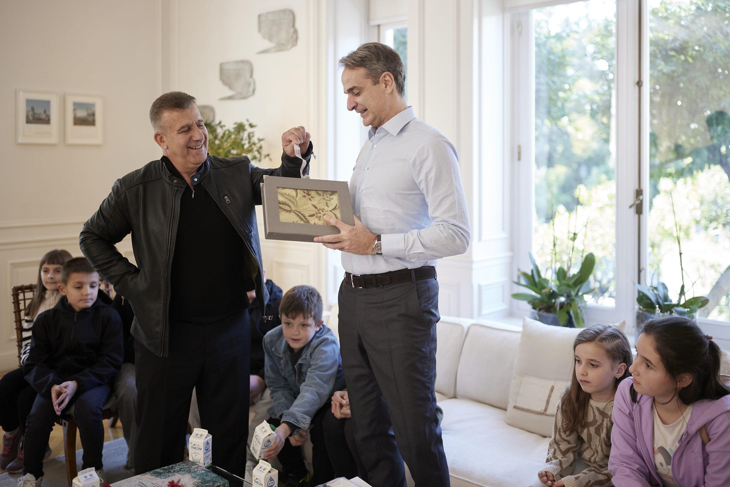 Ο Πρωθυπουργός αντάλλαξε ευχές και δώρα για τις γιορτές με τα παιδιά, συζήτησε με τους νεαρούς μαθητές, τους εκπαιδευτικούς και τους γονείς που τα συνόδευαν για τη ζωή στο σχολείο και το χωριό τους, ενώ είχε και την ευκαιρία να ακούσει τις εντυπώσεις τους από την επίσκεψή τους στην Αθήνα. Τα παιδιά προσκάλεσαν τον Κυριάκο Μητσοτάκη να επισκεφθεί το σχολείο τους.