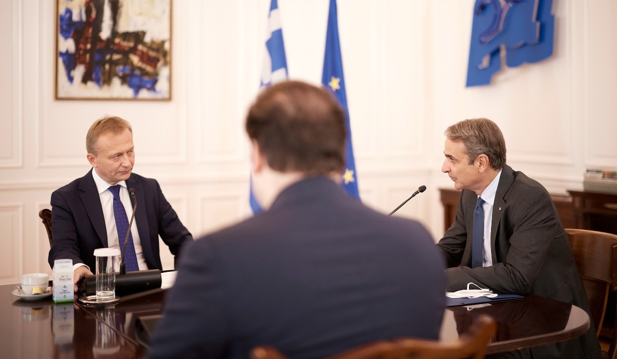 Ο Πρωθυπουργός Κυριάκος Μητσοτάκης συναντήθηκε το πρωί με τον Ευρωπαίο Επίτροπο για τον Προϋπολογισμό, την Καταπολέμηση της Απάτης και τη Δημόσια Διοίκηση Πιοτρ Σεραφίν, στο Μέγαρο Μαξίμου.
