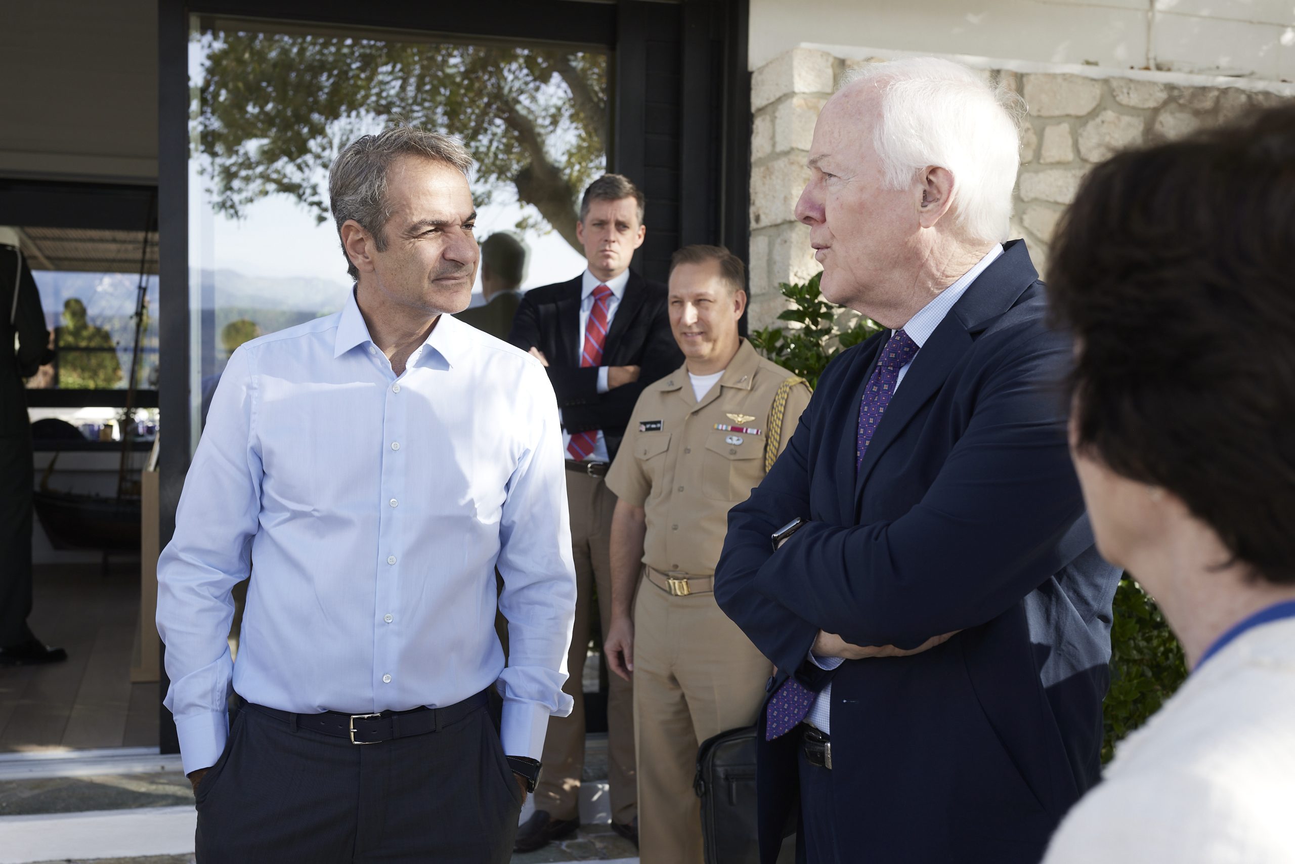 Συνάντηση με ομάδα Αμερικανών Γερουσιαστών του Ρεπουμπλικανικού Κόμματος είχε ο πρωθυπουργός, Κυριάκος Μητσοτάκης, στην οικία του στα Χανιά και συγκεκριμένα τους Jerry Moran, Susan Collins, John Boozman, John Cornyn, John Hoeven, που συμμετέχουν, μεταξύ άλλων, στις Επιτροπές Κατανομής Πόρων, Πληροφοριών και Ενέργειας της Γερουσίας των Ηνωμένων Πολιτειών, παρουσία του υπουργού Άμυνας, Νίκου Δένδια και του πρέσβη των ΗΠΑ, George Tsunis, σύμφωνα με ενημερωτικό σημείωμα από το γραφείο Τύπου του γραφείου του πρωθυπουργού.