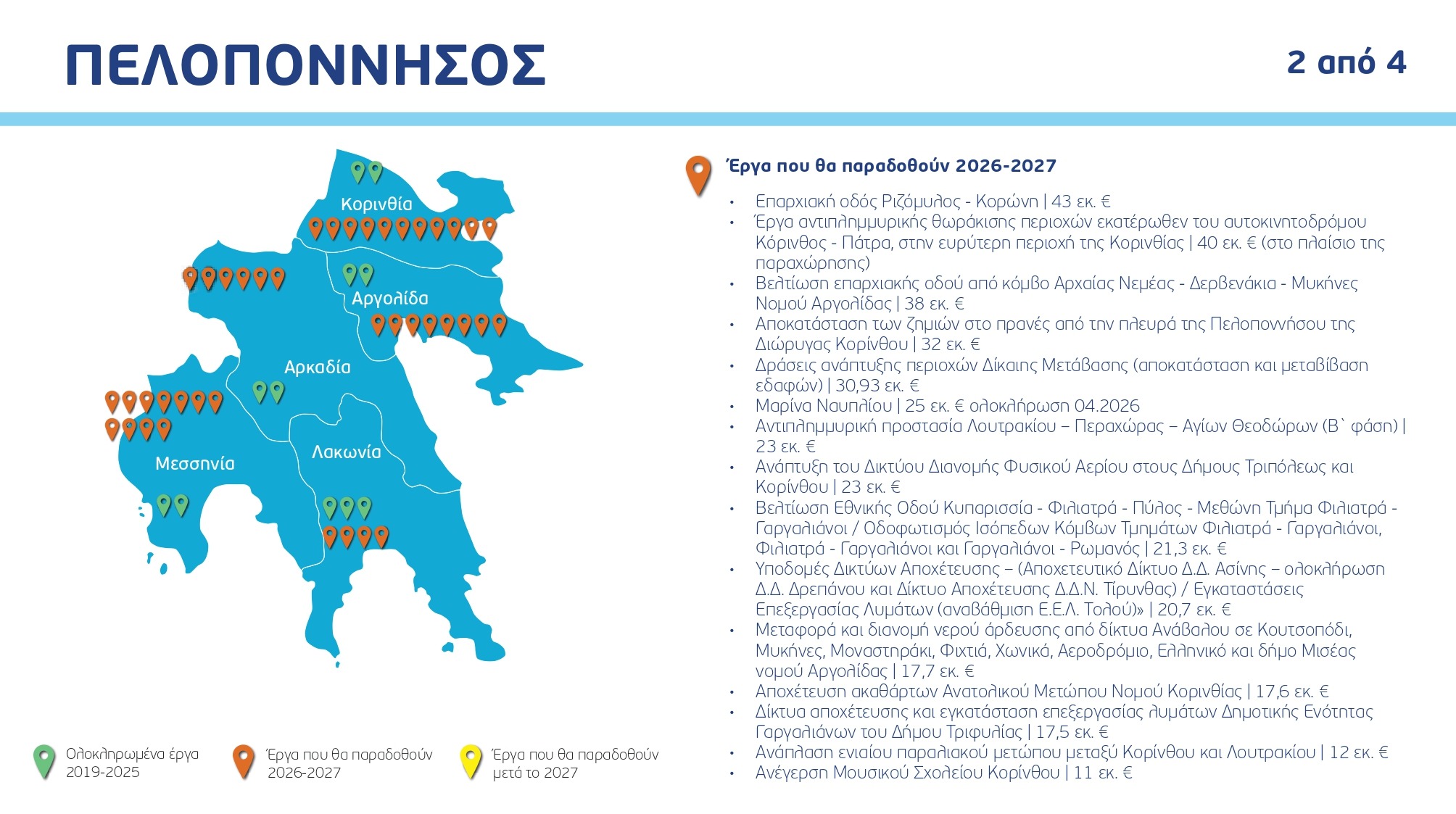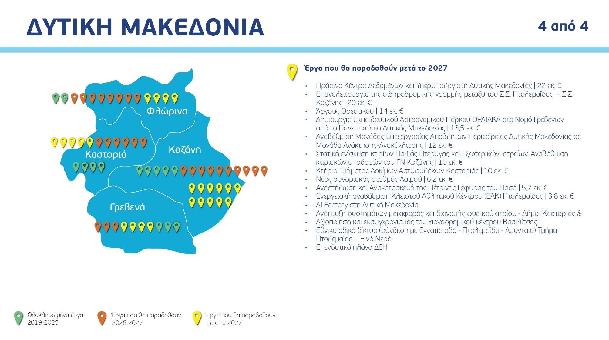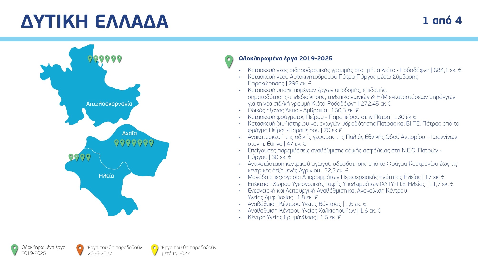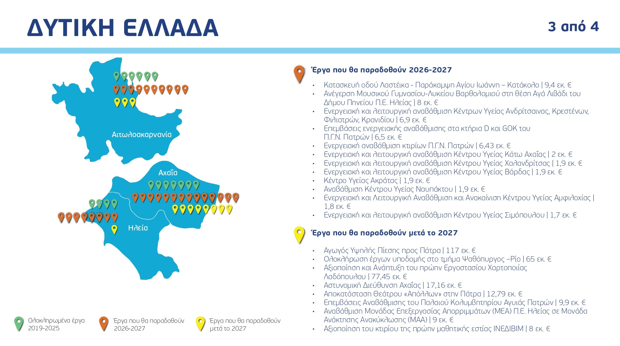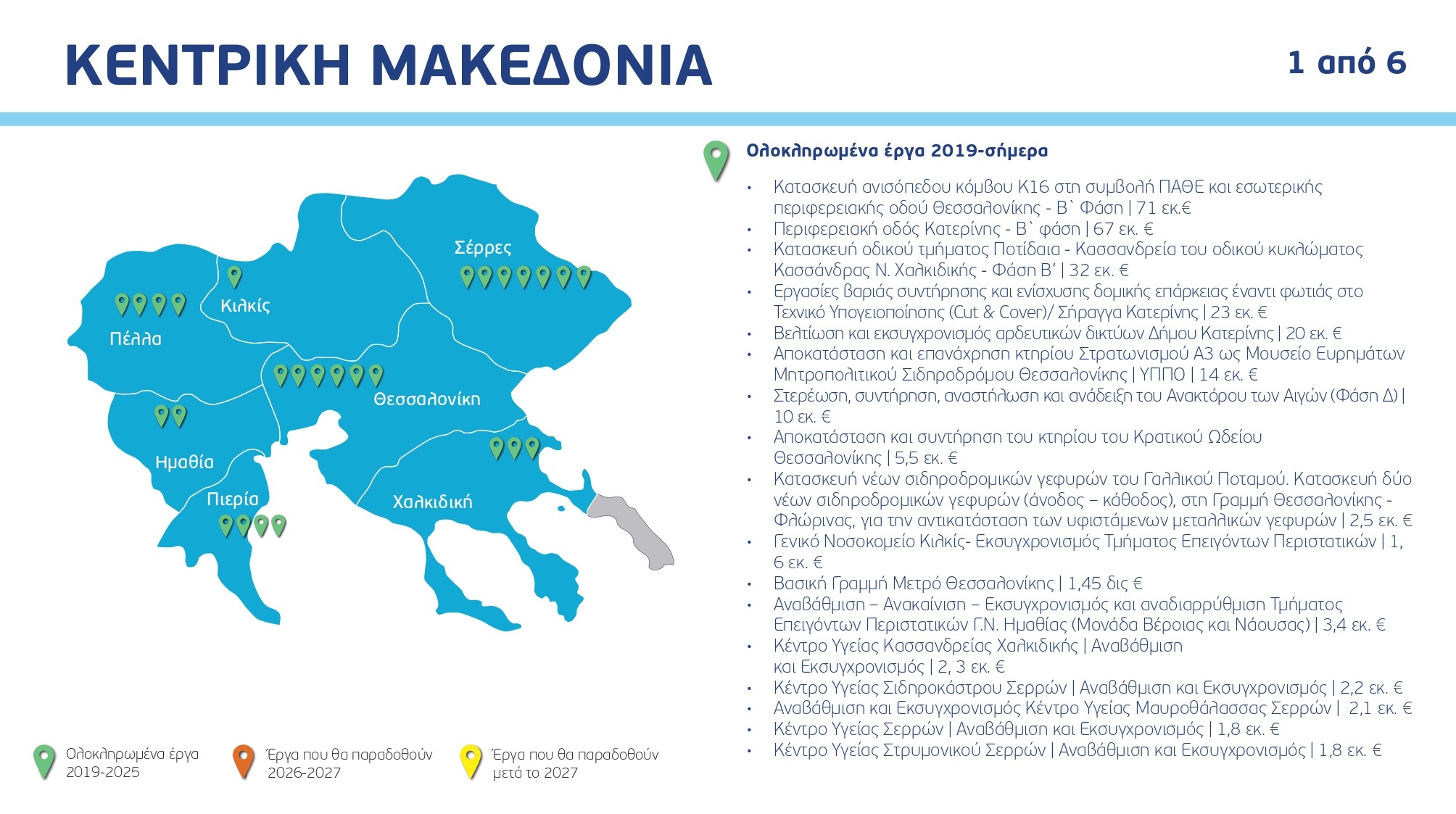 Ο χάρτης των έργων ανά Περιφέρεια και κατηγορία, με συγκεκριμένα ορόσημα και χρονοδιαγράμματα: