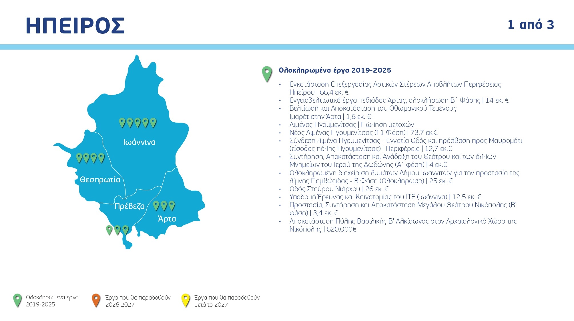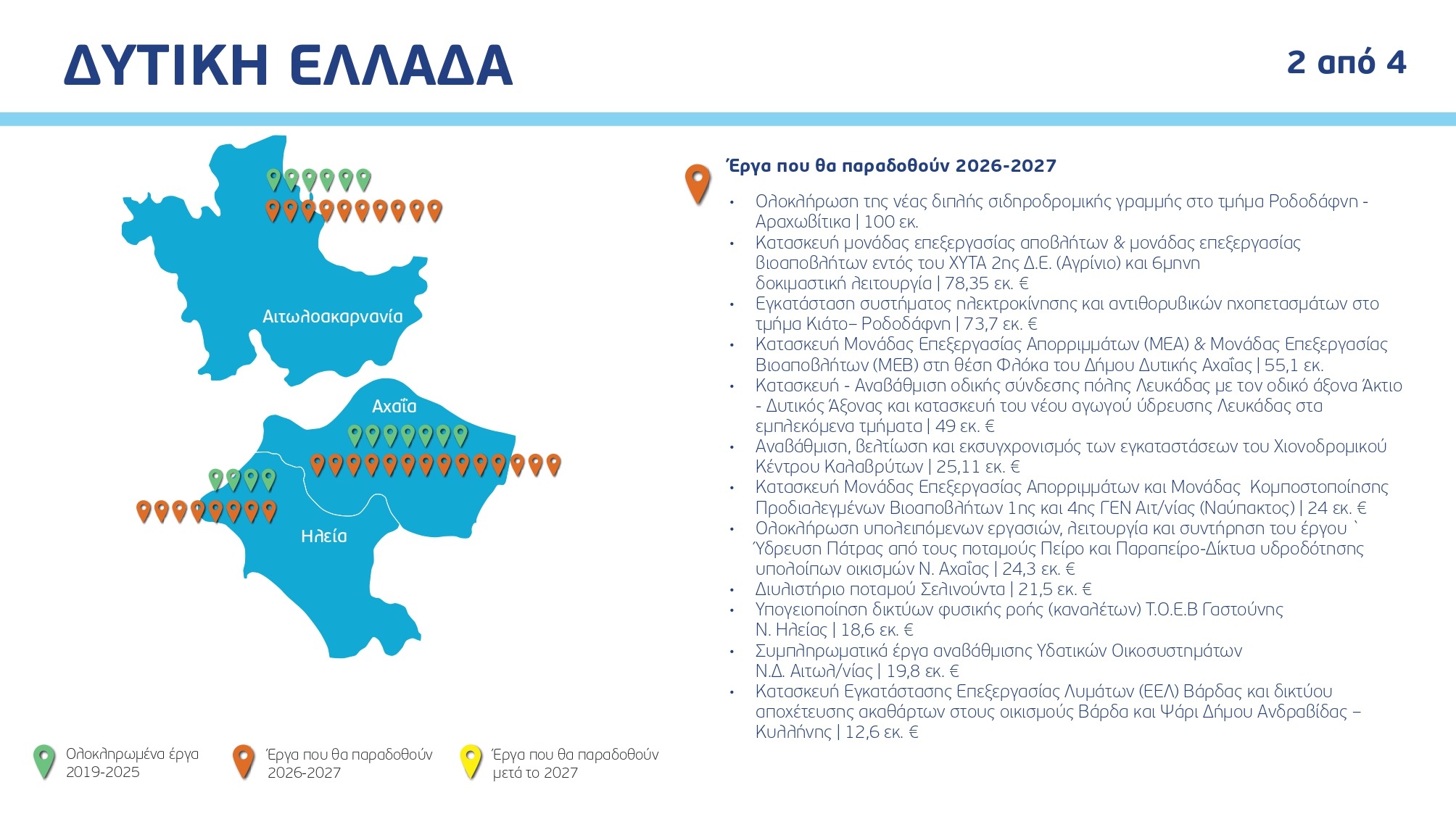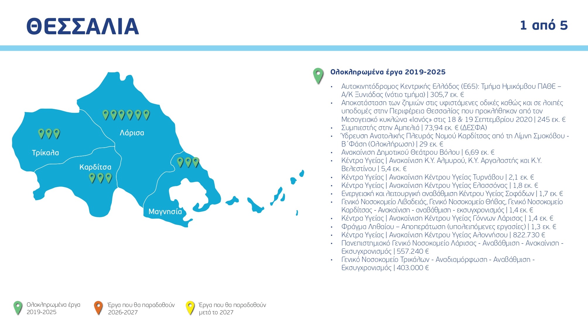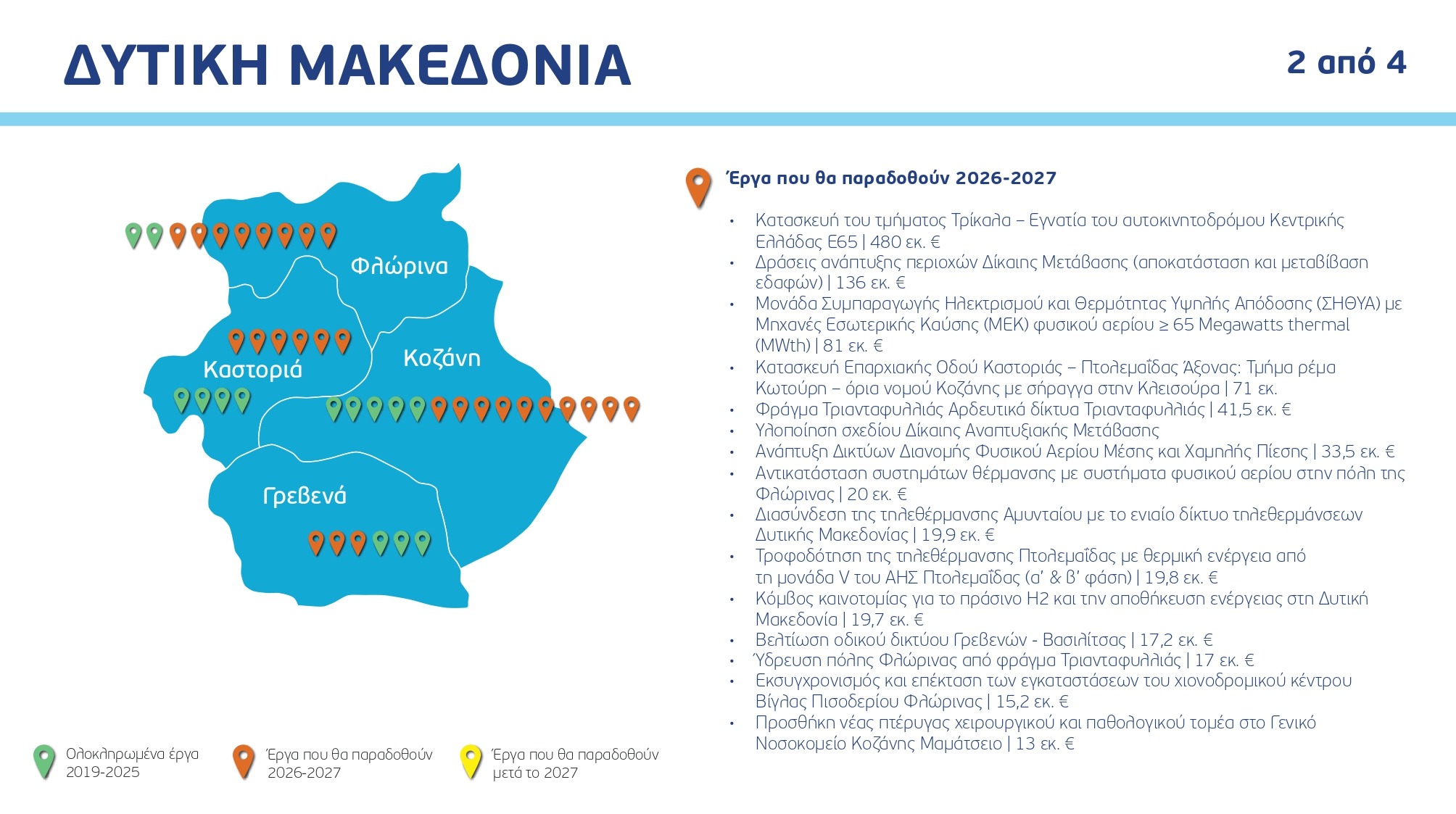 Ο χάρτης των έργων ανά Περιφέρεια και κατηγορία, με συγκεκριμένα ορόσημα και χρονοδιαγράμματα: