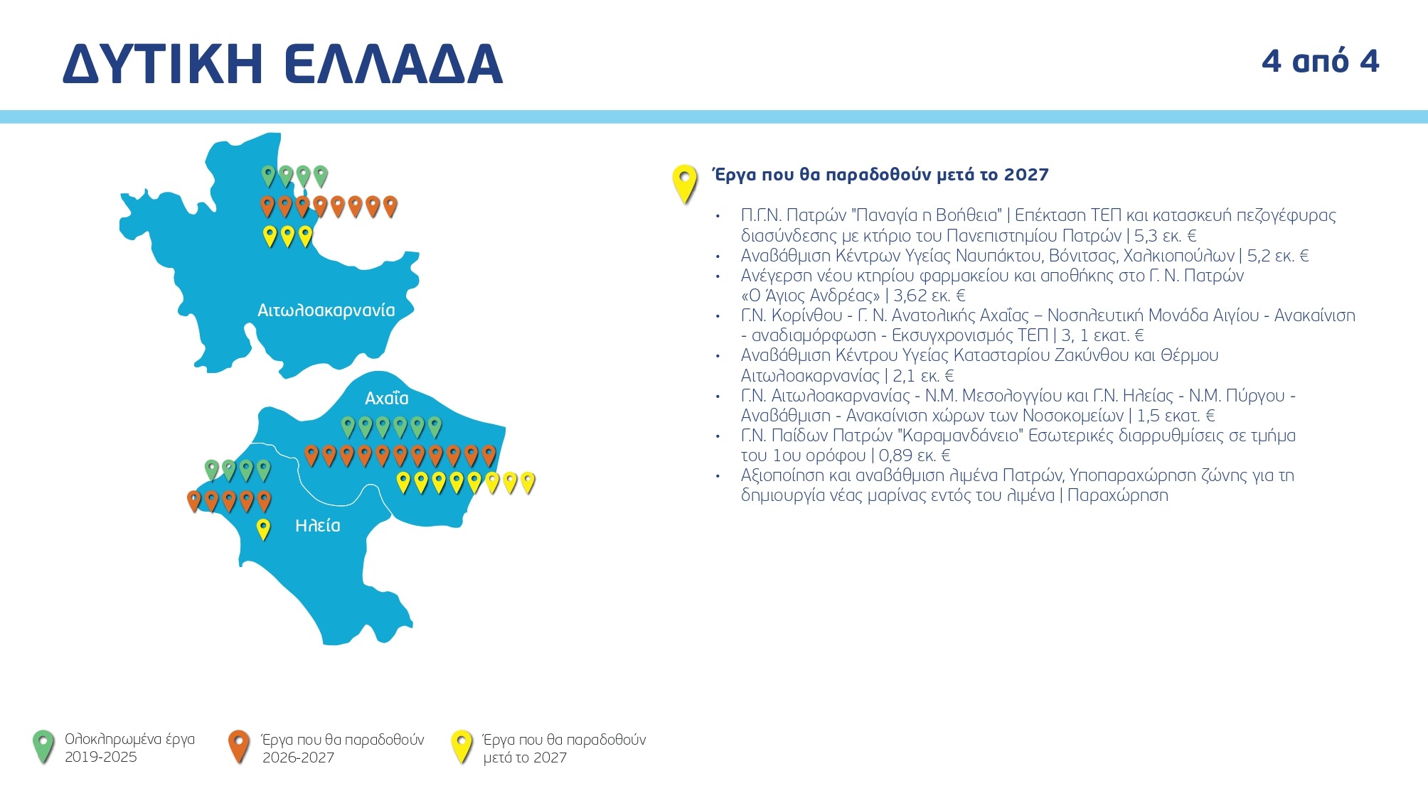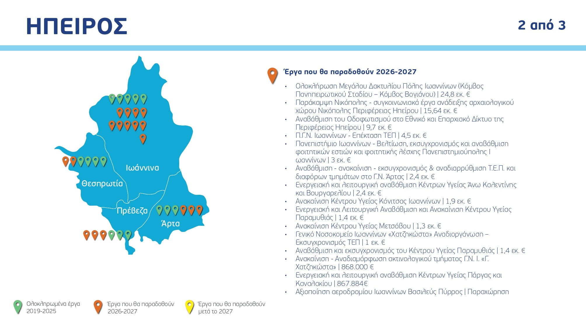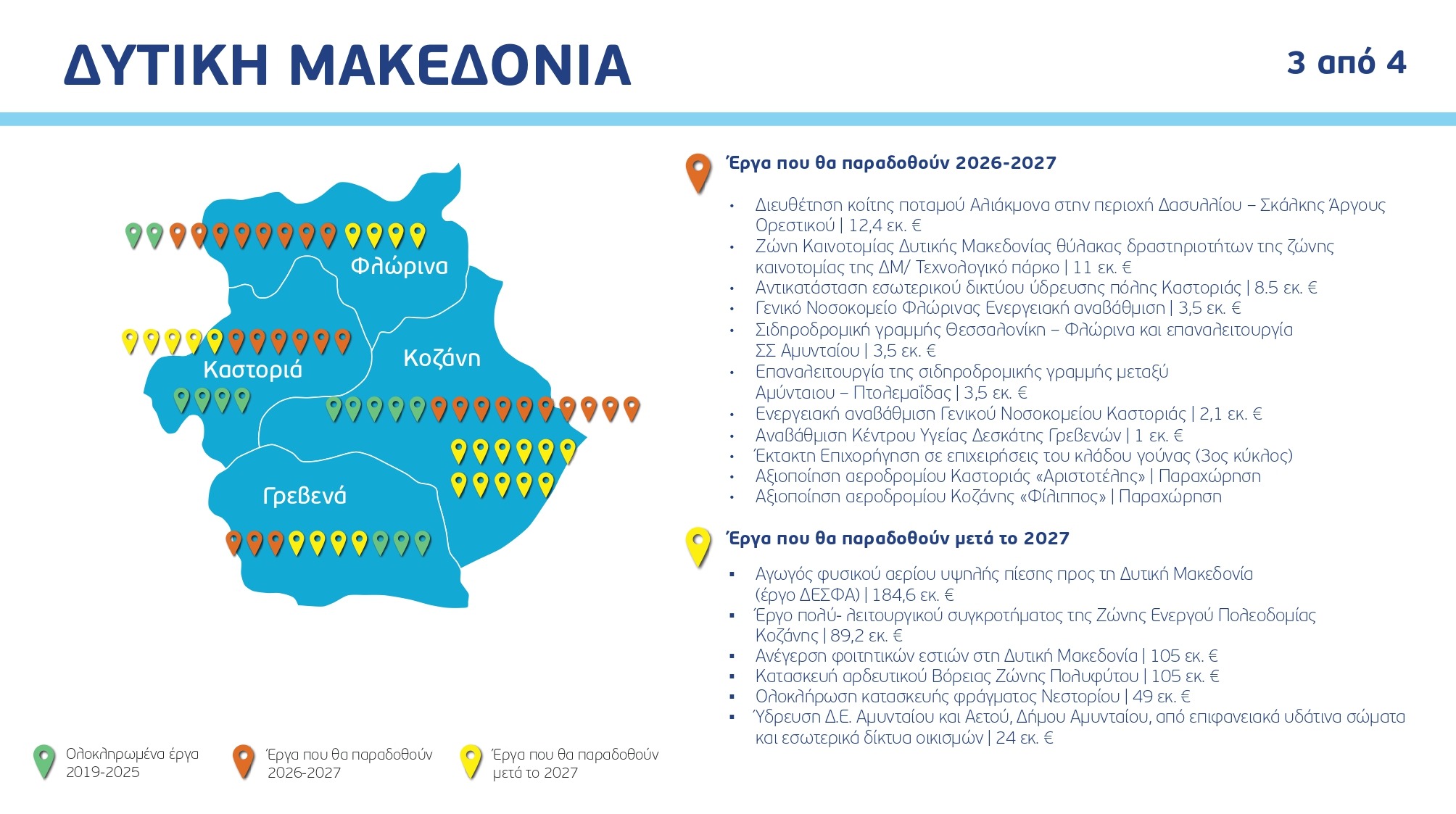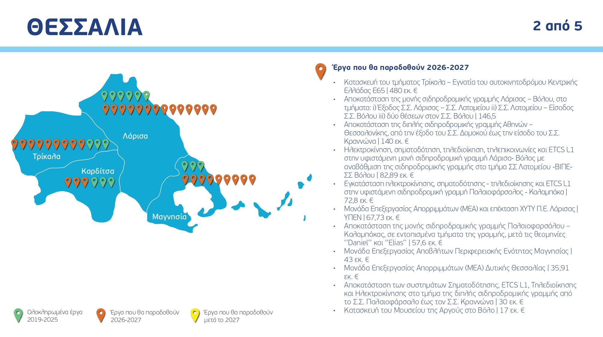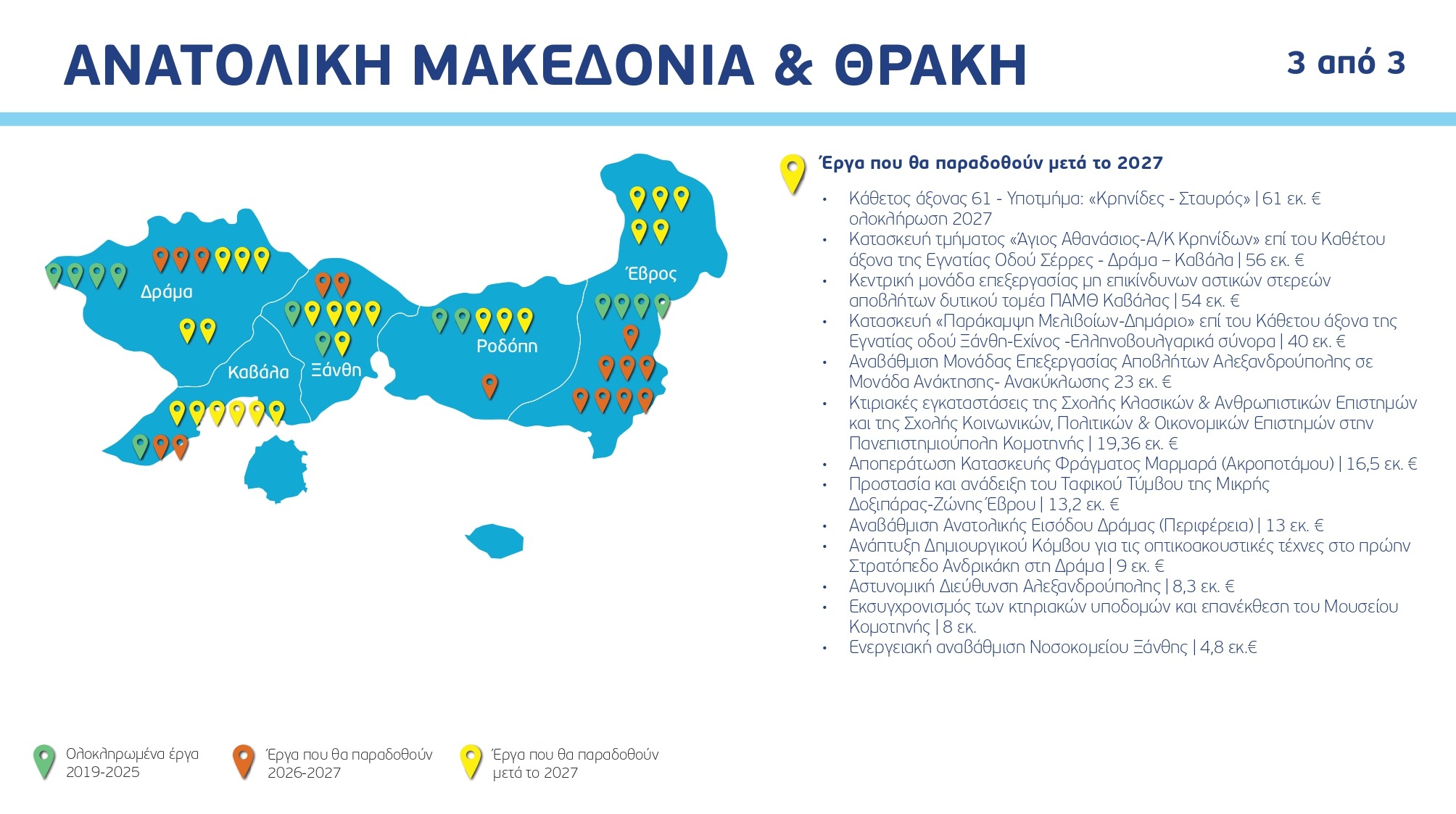 Ο χάρτης των έργων ανά Περιφέρεια και κατηγορία, με συγκεκριμένα ορόσημα και χρονοδιαγράμματα: