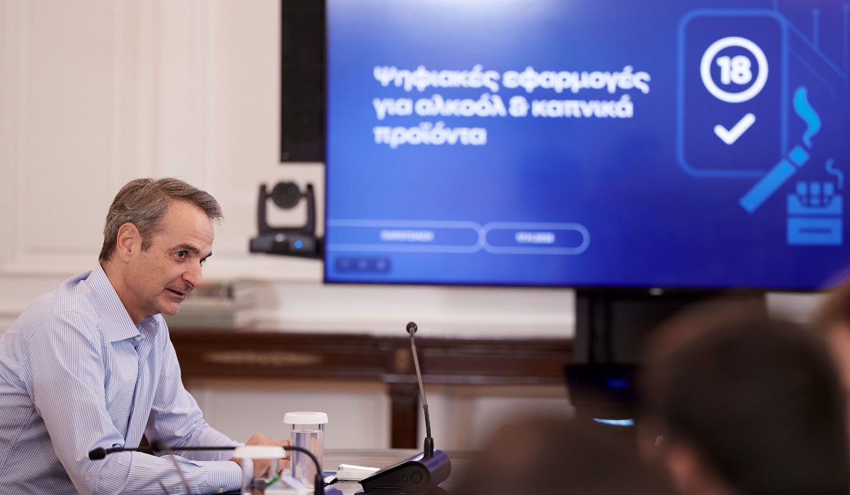 Τρία νέα ψηφιακά εργαλεία που θα αυξήσουν την αποτελεσματικότητα των ελέγχων για την απαγόρευση πώλησης αλκοολούχων ποτών και καπνικών προϊόντων σε ανήλικους παρουσιάστηκαν τη Δευτέρα, κατά τη διάρκεια σύσκεψης υπό τον Πρωθυπουργό Κυριάκο Μητσοτάκη, στο Μέγαρο Μαξίμου.
