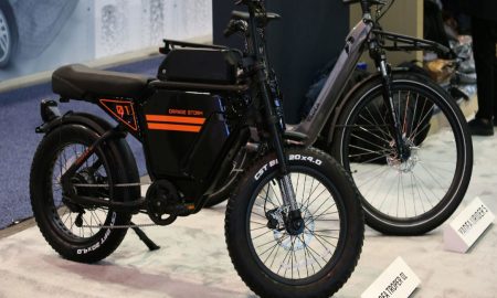Ένα ηλεκτρικό μοτοποδήλατο αυτόνομης οδήγησης στον κέντρο παρουσίασης προϊόντων της βιομηχανίας Yadea στην πόλη Γουσί της επαρχίας Τζιανγκσού στα ανατολικά της Κίνας...