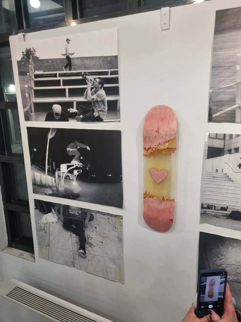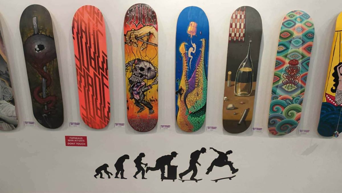 Το εικαστικό μέρος της έκθεσης περιλαμβάνει σανίδες σκέιτμπορντ, φιλοτεχνημένες από σύγχρονους και καταξιωμένους καλλιτέχνες από τον χώρο του σκέιτ, του γκράφιτι, του τατουάζ και της κλασικής ζωγραφικής.