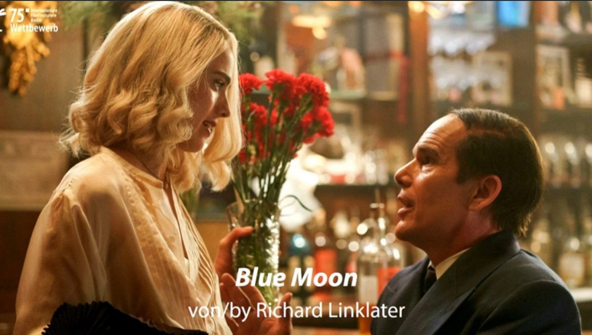 Ο Linklater, γράφει ο Gordon, «ανοίγει την ταινία του Blue Moon με αυτή ακριβώς την εικόνα, τον στιχουργό να τρεκλίζει στη βροχή, απελπισμένος για αλκοόλ, προσοχή και, ίσως πάνω απ’ όλα, σεβασμό». Ο Ethan Hawke, μακροχρόνιος συνεργάτης του σκηνοθέτη (σ.σ. ας μην ξεχνάμε ότι γύρισαν μαζί και μια ταινία στην Καρδαμύλη), δίνει μια «σπαρακτική ερμηνεία» του Χαρτ, ενός καλλιτέχνη που πάλευε με την αυτοϋπονόμευση και τη λήθη.