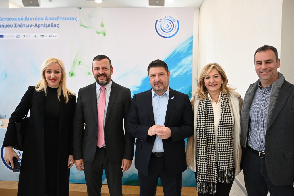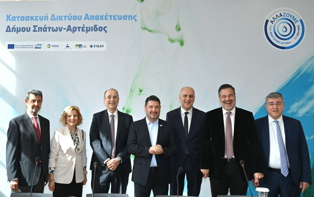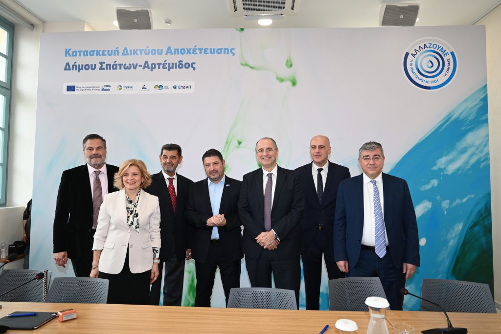 Υπεγράφη σήμερα η σύμβαση για την κατασκευή του δικτύου αποχέτευσης στον Δήμο Σπάτων – Αρτέμιδος, παρουσία του Περιφερειάρχη Αττικής Νίκου Χαρδαλιά, του Γενικού Γραμματέα Συντονισμού Διαχείρισης Αποβλήτων του ΥΠΕΝ Μανώλη Γραφάκου, του Δημάρχου της πόλης Δημήτρη Μάρκου, του Διευθύνοντος Συμβούλου της ΕΥΔΑΠ Χαράλαμπου Σαχίνη και των εκπροσώπων της αναδόχου εταιρείας.